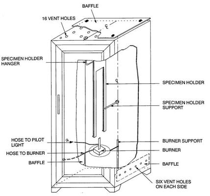 Αυτή η συσκευή χρησιμοποιείται για να αξιολογήσει την αντίσταση φλογών του υφάσματος, του πολυστρωματικού υφάσματος, των συνελεύσεων υφάσματος που χρησιμοποιούνται στις εσθήτες φορεμάτων και του tentage στρατοπέδευσης.