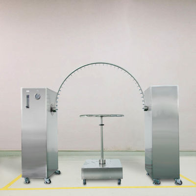Περιλαμβάνεται επίσης υποστήριξη δείγματος.Παρέχεται με δύο βάσεις δειγμάτων - μία διάτρητη για IPX4 και μία μη διάτρητη για IPX3.Το στήριγμα είναι κατασκευασμένο από ανοξείδωτο χάλυβα και τοποθετείται σε τροχούς για εύκολο χειρισμό και ρύθμιση.Προσφέρει ρυθμίσεις ύψους που κυμαίνονται από 855mm έως 1300mm.Οι ταλαντευόμενοι σωλήνες κατασκευάζονται με ακτίνες στομίου από 200 mm έως 1600 mm με προοδευτική αναλογία 200 mm.