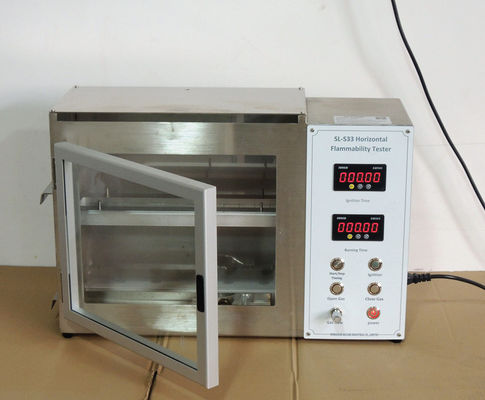 Ο οριζόντιος ελεγκτής ευφλέκτου μπορεί να ανιχνεύσει σχετικό retardancy ποσοστού και φλογών καψίματος των κλωστοϋφαντουργικών προϊόντων, ειδικά αυτοκίνητα εσωτερικά υφάσματα. Φλόγα - ιδιότητες καθυστερούντω των αυτοκίνητων εσωτερικών υλικών υπό το ελάττωμα και τους ανώμαλους όρους.